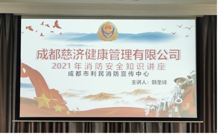 为切实加强消防安全管理,普及消防安全知识,进一步提高公司职工的消防安全意识与防护能力,5月10日下午2时,慈济公司与成都市利民消防宣传中心联合开展2021年消防安全知识讲座,公司全体职工参与本次讲座。